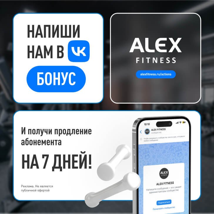 Индивидуальный подход и лучшие предложения по продвижению идей спорта и здорового образа жизни в клубах ALEX FITNESS.